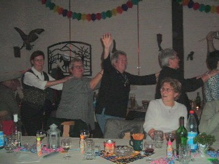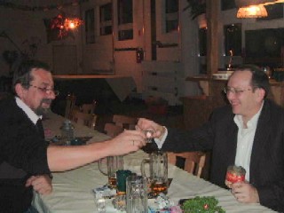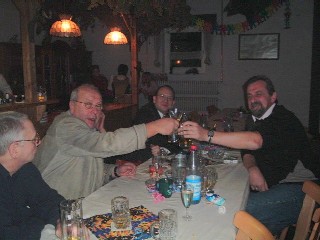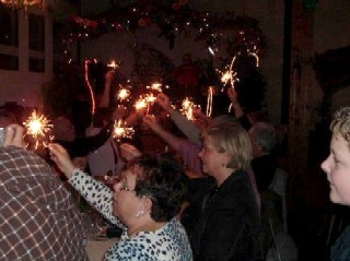 Es herrscht eine Bombenstimmung mit A-Cappella-Gesängen und Polonäse, Musikeinlagen des fahrenden Volkes und anschließendem Prost Neujahr und Feuerwerk. Gegen 1:00 leert sich langsam der Saal, aber wir halten durch und sind wieder mal die letzten.