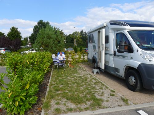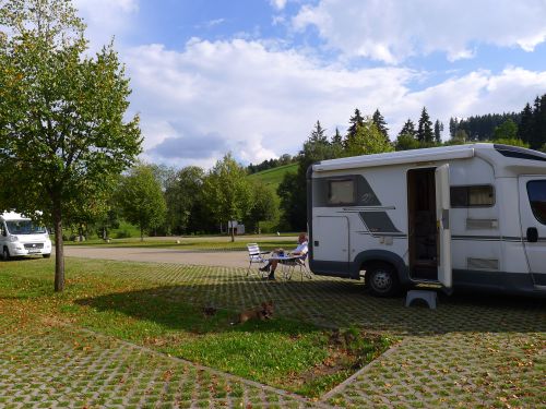 Ein Satz mit x. Alle Plätze belegt. Also fahren wir nach Bad Krozingen, dort gibts ja genügend.... dachten wir. Einer war noch frei. Direkt neben der Entsorgung. Aber wir sind ziemlich schmerzfrei, denn wenn die morgen früh entsorgen schlafen wir eh noch.