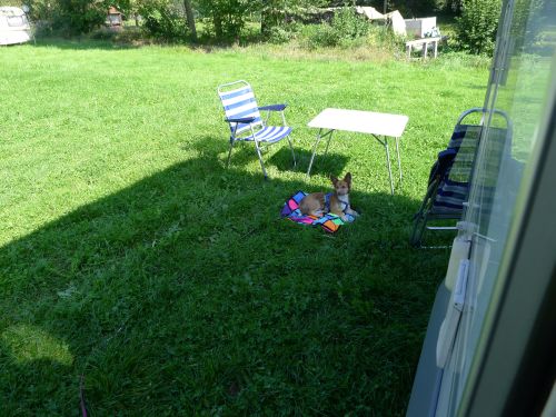 Carl fängt mal gleich an zu relaxen, beäugt aber dabei stets unsre Nachbarn. So ganz geheuer sind die ihm nicht.