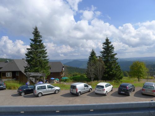 Nun stehen wir in Schonach und genießen die Sonne, bevor wir uns auf den Weg zur Touristeninformation machen, um zu bezahlen.