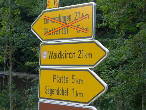 Und siehe da, ich hatte wie immer Recht, nur dass es mir leider nix nützt. Hier steht tatsächlich die Engstelle bei Waldkirch, und vor Waldkirch geht die Straße nach Gutach und Elzach ab und das hätte uns ja gepasst.