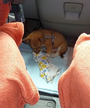 Die Heimfahrt verlief bis auf die ersten 3 Minuten problemlos. Nachdem er merkte, dass die Meckerei nix bringt, hat er sich hingelegt und gepennt, bis wir zuhause geparkt haben.