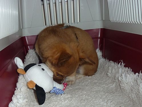 Gestern bei der Tierärztin hat sich Carl vorbildlich benommen. Er wurde gechipt und hat dabei keinen Mucks gesagt. Sein neues Zuhause gefällt ihm auch super, denn endlich kann er im Garten springen und spielen, und ich muss ihn bremsen, damit er nicht übertreibt. Auch im Haus klappts bestens, er belagert alle Räume und wird immer frecher. Nach dem ersten Morgengeschäftchen kommt er ins Bett und schläft sofort weiter.