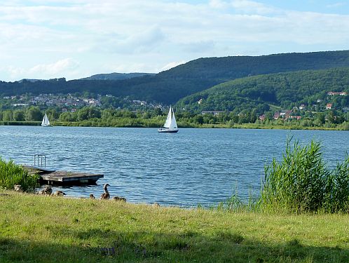 Jedenfalls ists Wetter heute wieder schön und wir packen und fahren nach Eschwege an den Werratalsee. Auch diese Fahrt verlief entspannt. Unser Hund hat sie komplett verschlafen.