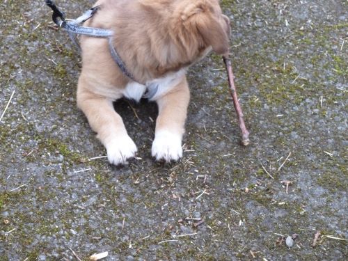an der Leine gegangen. Also was man bei einem Welpen vorbildlich nennen kann.