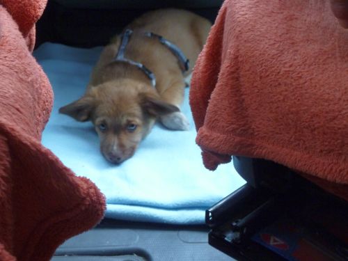 Im Womo kommt er gleich in die Box, legt sich hin und verpennt die 20 km Fahrt bis zum Biggesee.