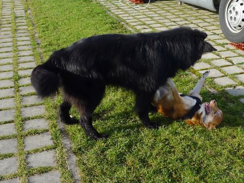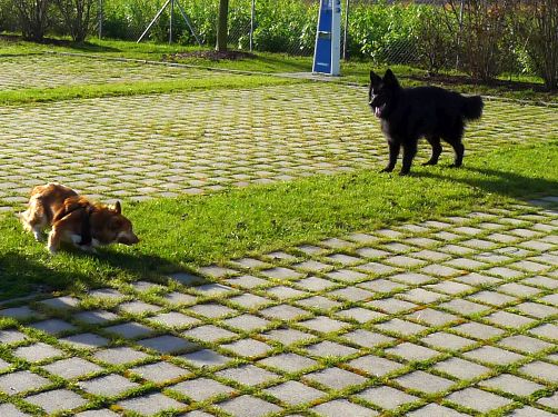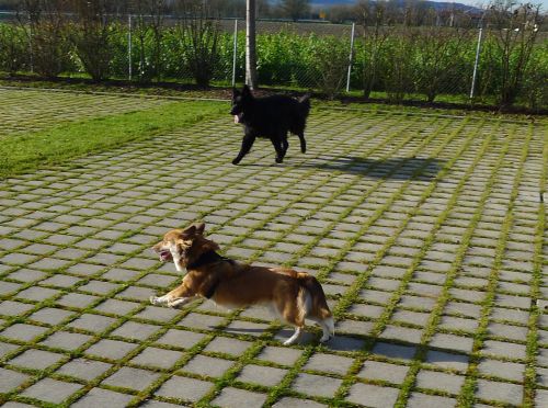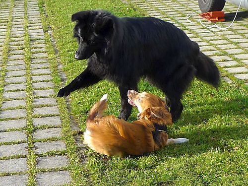 Jetzt konnte Carl mal zeigen, was in ihm steckt, denn mit so großen erwachsenen Hunden hat er noch nie getobt.