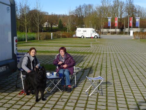 Danach lag er hechelnd im Auto und wir hatten Ruhe, um in der herrlichen Sonne unsren Kaffee zu genießen.