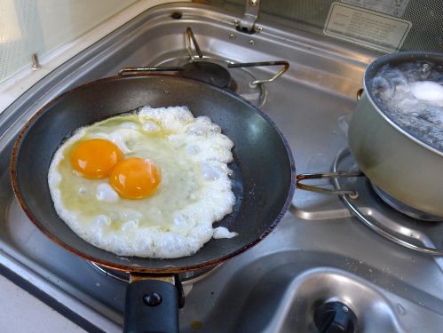 Danach Frühstück mit Bauerneiern mit Doppeldotter. Kann mich garnicht erinnern, wann wir zuletzt solche riesigen Eier hatten.