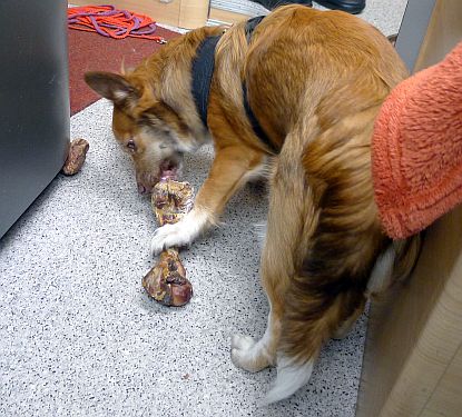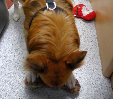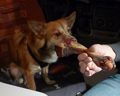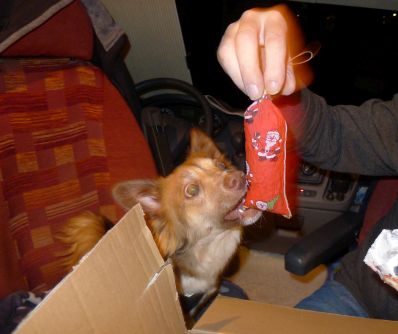Die Weihnachtswurst war allerdings nicht für Carl, und den Knochen mussten wir ihm erst mal wieder abnehmen, denn der kleine Dödel hat sich vor Gier richtig hochgeschaukelt. Das Ding wird demnächst häppchenweise zugeteilt. Und morgen machen wir unser Womo zum Rudi...