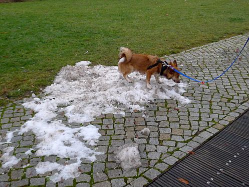 denn hier ist alles grün und er steuert jeden noch so dreckigen Schneerest an um