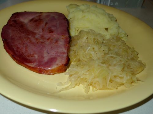 Zum Abendessen gibts traditionell Sauerkraut, Rippchen und Brei