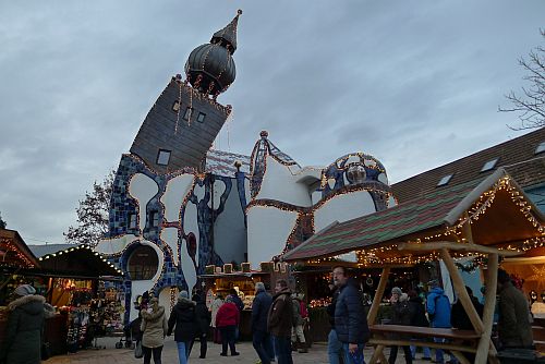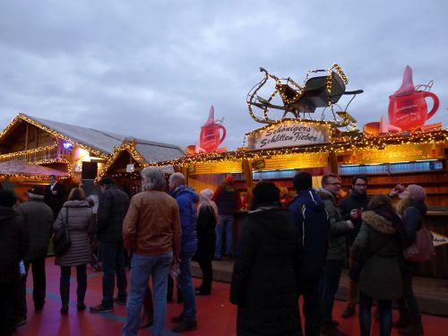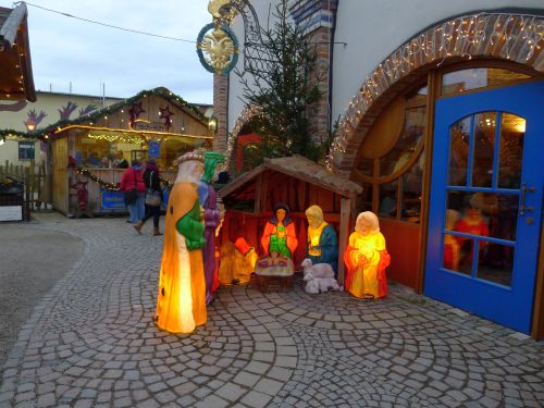 Im strömenden Regen kommen wir nach 80 km und zweieinhalb Stunden nerviger Fahrt in Wertheim an. Und mit dem Weihnachtsmarkt ists auch ein Satz mit X. Es schüttet ohne Ende.