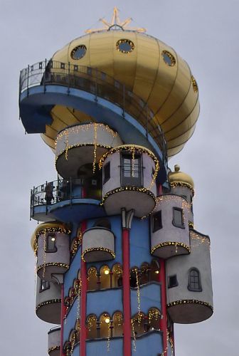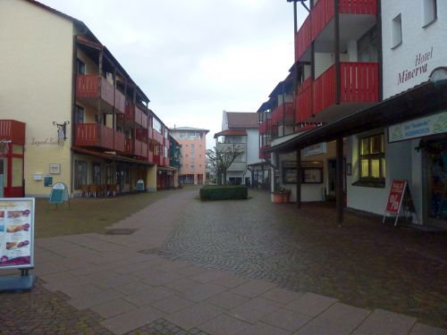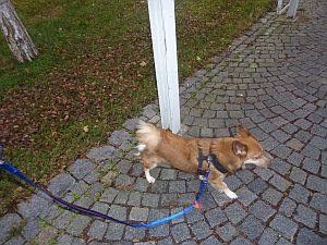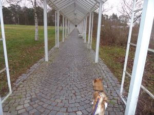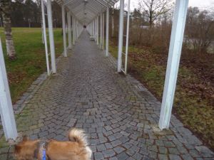 Und für die Besucher der Therme gibts einen langen Laubengang, damit keiner nass wird bei diesem Mistwetter hier. Das war ein prima Trainings- und Lernprogramm für Carl.