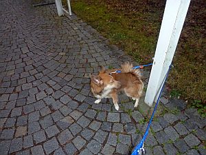 Zur Beschäftigung kriegt er ne gerollte Rinderhaut, wir machen uns nen Sekt auf, machen prost Urlaub, und so sind wir alle mit der Welt wieder versöhnt.