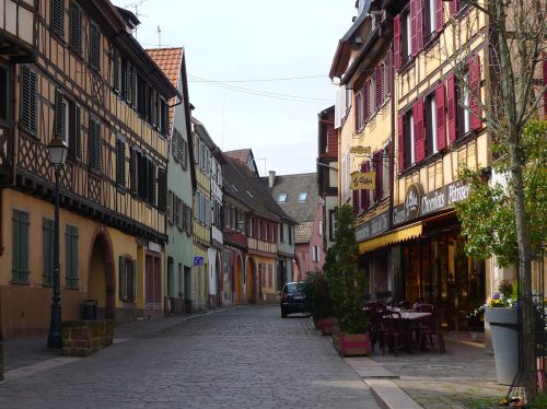 und die Landschaft ist noch flach und eintönig. Aber bald sehen wir die Vogesen und biegen erst mal ab nach Barr, denn ich kanns nicht abwarten, die gemütlichen bunten Sträßchen zu sehen.