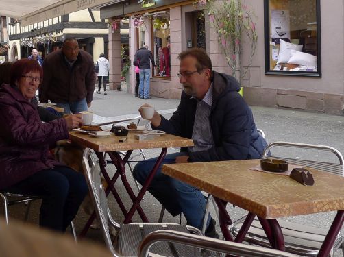 Um 10:30 - eigentlich schlafen wir da normalerweise noch - fahren wir über die Grenze ins Land der Störche, Flammkuchen und der Eclairs.