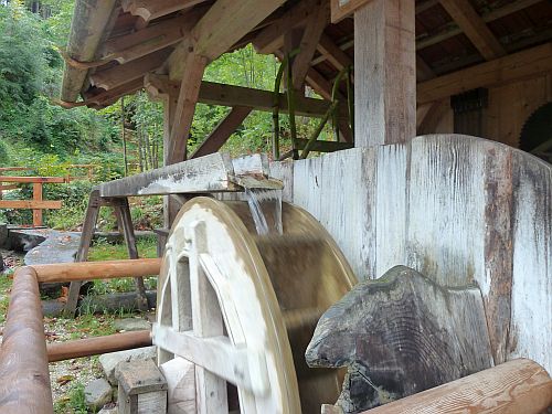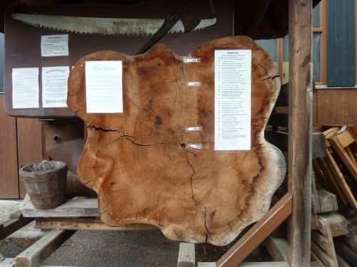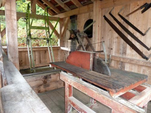 Auch Anomalien gibt es zu sehen. So gelangen wir ohne große Anstrengung bis hoch zum Wald, wo eine Sägemühle nachgebaut und erklärt ist.