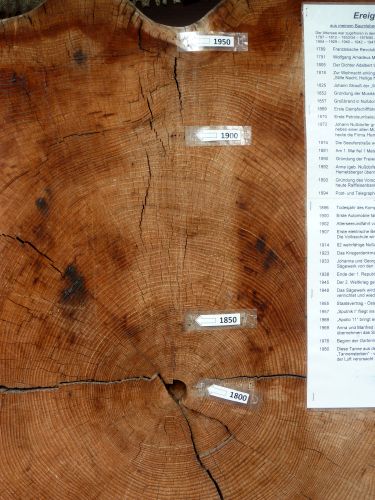 Hier sieht man die Scheibe eines 150 Jahre alten Baumes.