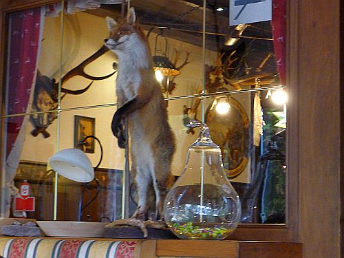 Nette Kneipe von außen, aber drinnen ists etwas gewöhnungsbedürftig. Überall stehen tote Tiere rum, und der sieht Carl verdammt ähnlich.