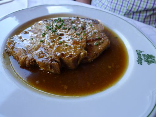 Schweinsbraten vom Wollschwein, ebenfalls ausm Ort.
