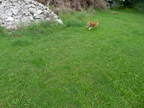 Und nun können wir auch in Ruhe einen Spaziergang durchs Feld nebenan machen und jagen dann unsern Hund nochmal übern Platz.