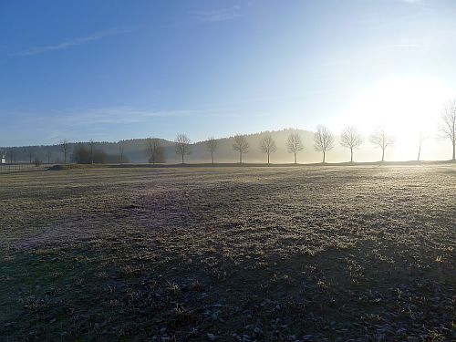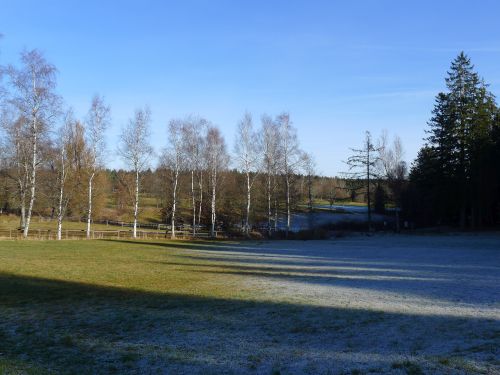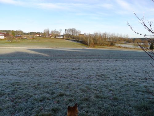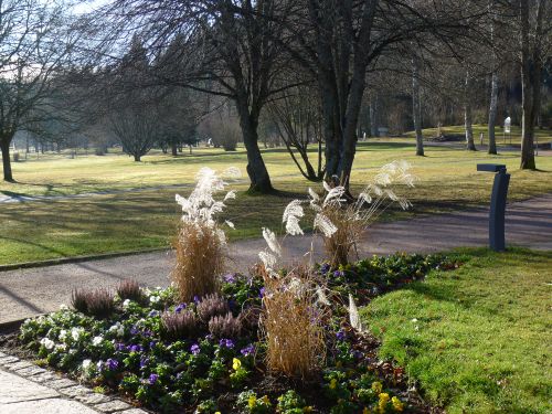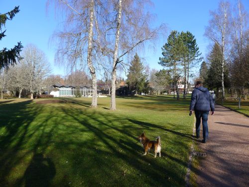 Die Sonne leckt so langsam den Raureif weg, als wir uns auf unsren Spaziergang machen. Wir schauen uns heute mal den Kurpark