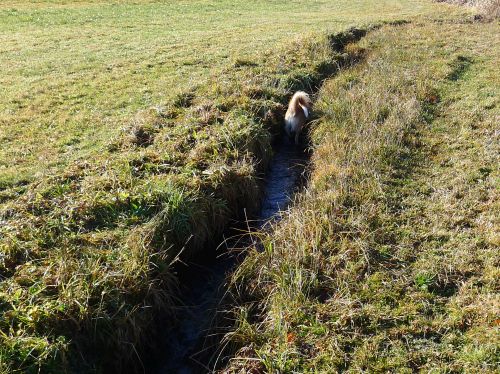 Carl entdeckt Eis auf den Entwässerungsgräben und