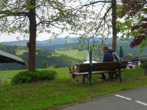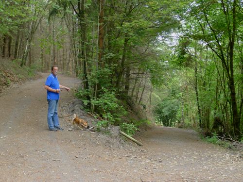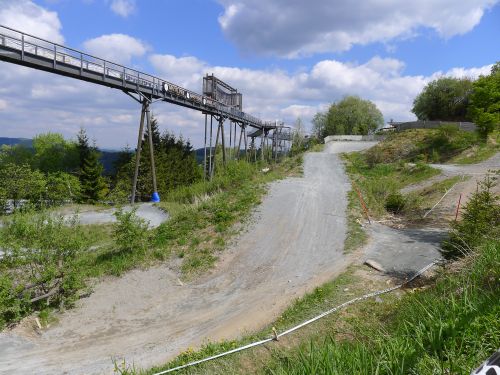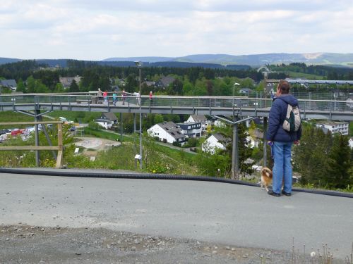 Hier findet am Wochenende ein Mountainbike-Festival statt, zu dem 35.000 Menschen erwartet werden. Im Moment werden noch die Strecken präpariert und die Stände aufgebaut. Wir machen die große Rundstrecke zur Besichtigung und dann gibts Pommes mit Majo, und wir warten wieder mal auf den Bus. Dabei treffen wir die Schulklasse, die schon in Neuastenberg mit uns auf den Bus gewartet hat, und alle riefen: da ist die Frau mit Carl.... und schon war unser Hund wieder fest in fremden Händen. Er genießt es ja, von Kindern durchgeknuddelt zu werden. Er ist einfach nur verrückt nach Kindern.