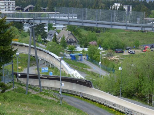 und warten wieder mal auf den Bus. Und weils noch früh am Tag ist, steigen wir an der Bob-Bahn aus und besichtigen dort das Gelände.