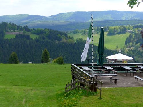Peter kommt um 15:00 heim und gleich gehts los. Es läuft gut, aber wir brauchen trotzdem zweieinhalb Stunden bis wir ganz hoch oben kurz vorm Kahlen Asten im Skigebiet ankommen. Die letzte Strecke war recht eng, der Gegenverkehr in der Übermacht, und wir dauernd auf dem unbefestigten Seitenstreifen. So gehts halt, wenn man kleine weiße Sträßchen fährt. Aber es war landschaftlich sicher die schönere Strecke.