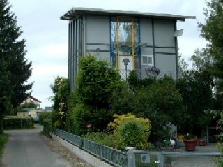 wegen dem Hochwasser, gegenüber eine Straßenlaterne - ebenfalls in Alkovenhöhe,