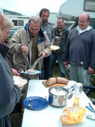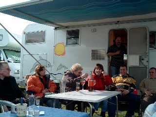 Gegen Abend ist Bieranstich und in geselliger Runde warten wir auf den Saumagen.