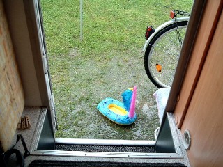und wir sind froh, dass wir im warmen Womo sitzen, weil wir ja Bruno so lange nicht