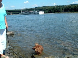 schickten die Hunde ins Wasser, allerdings war Bobby gleich wieder draußen.