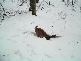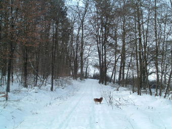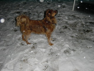 aufpassten, machte ich mit Bruno einen Schneespaziergang. Scheinbar waren hier jede Menge Mäuse, denn Bruno buddelte den ganzen Wald um. |