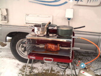 Freitag gegen 18:30 Uhr trudelten wir im Caravanpark Laubach ein. Alle waren schon da und nach der Begrüßung wurde erst mal gekocht. Während die anderen zum Schnitzelessen in die Camping- Gaststätte gingen, saßen wir noch mit BerndF bei uns im Wohnmobil und ließen uns die Riesengarnelen in Knoblauchbutter schmecken. Nach einem Erdbeerschnaps als Verteiler mischten auch wir uns unter die Menge und nach einem gemütlich Stammtischabend nahm der harte Kern noch einen Absacker in der Garage, die den Campern hier als Gemeinschaftsraum zur Verfügung steht. Ruckzuck war es 2:00 und Zeit fürs Bett. |