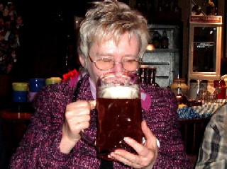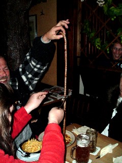 Meterwurst und Bernie hatte Last, den schweren Bierkrug zu heben.