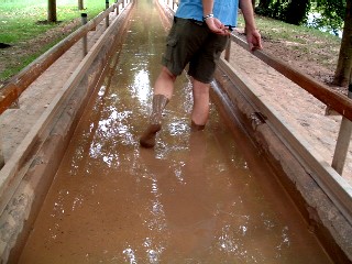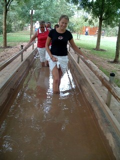 Zuerst mussten wir durch das Lehmbecken und es war richtig eklig, da