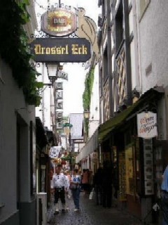 Am Fuß der Germania singt eine Gruppe junger Leute mit Klampfe "Die Wacht am Rhein", und nach einer Riesenrindswurst machen wir uns wieder auf den Rückweg. Zusammen mit unzähligen Busladungen Touris lassen wir uns noch durch die engen Gassen schieben und verpassen nur knapp das Rundfahrtschiff durchs Binger Loch. Aber sowas kann man ja bei besserem Wetter nochmal in Angriff nehmen.