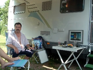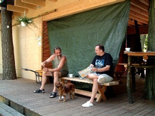 Aber so ein Kaffeepäuschen im schattigen Wald ist auch nicht zu verachten. Anschließend gehts wieder zurück auf den Platz und Peter tritt seinen Matratzenhorchdienst an.
