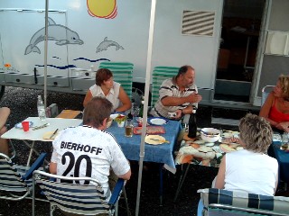 Während dieses nervenaufreibenden Spiels trudeln nach und nach die restlichen Treffenteilnehmer ein und mit der Gewissheit, dass wir nächste Woche ins Halbfinale gehen, treffen wir uns danach unter frebekas Markise.