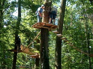 Kletterkünste der Besucher des Erlebnisparks. Bei diesen tollen