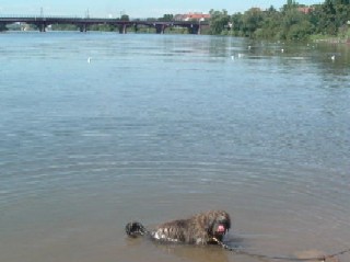 Lucie legt sich kurz in die Fluten des Neckars und Bruno ist ihnen gerade entstiegen
