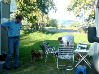 Jetzt steht dem gemeinsamen Abend mit Hans und Monika im Freien nichts mehr im Weg und gegen 1:00 verkriechen wir uns in den Alkoven.