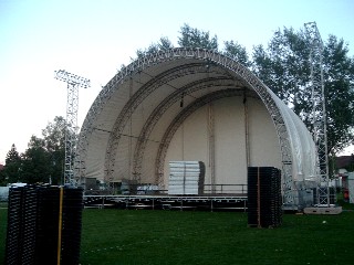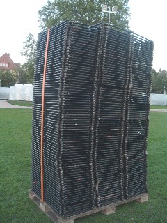Stapelweise stehen die Stühle noch auf dem Gelände herum und es sieht nach