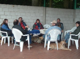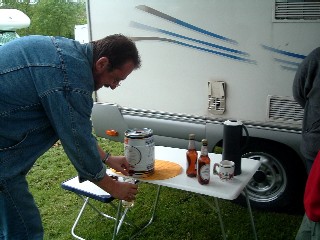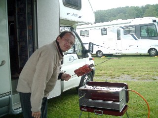 währenddessen gemütlich unterm Vorzelt des Nachbarwohnwagens Kaffee