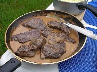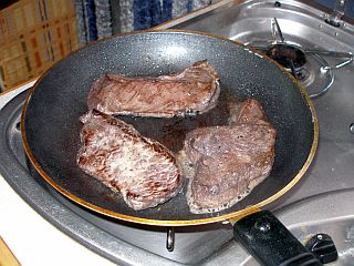 Steaks vom Riesensäugetier mitgebracht, die erst mal aufgetaut und