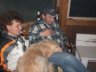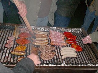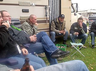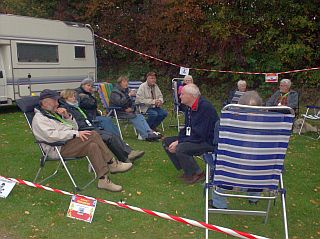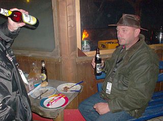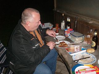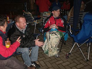 Es wird gefachsimpelt und geschwätzt, Belobigungs- und Strafbierchen werden verteilt, und gegen Abend wird das Basislager am Grillpavillon bezogen, ein zusätzliches Dach wird aufgestellt und der Grill angeheizt.