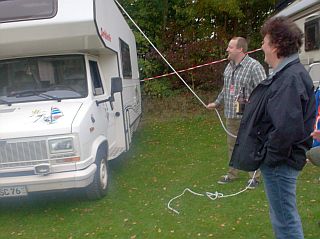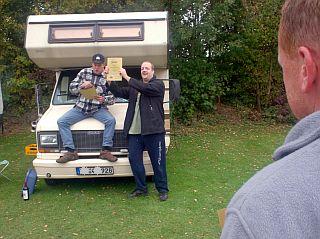 Björn hat seine erste Freisteher-Nacht - naja, ein wenig hat er schon geschummelt, denn er hing am Strom - überstanden und bekommt seine Urkunde verliehen. Auch die Seminarleiter erhalten ihre Belobigung, und dann wird es leider schon Zeit für die Heimfahrt. Wir haben genau 300 km vor uns, Wiebkes sind sogar 500 km weit angereist - aber die Fahrt hierher hat sich auf alle Fälle gelohnt. Es war ein geselliges und fröhliches Treffen mit neuen und alten Bekannten, und wir freuen uns schon auf Pfingsten.